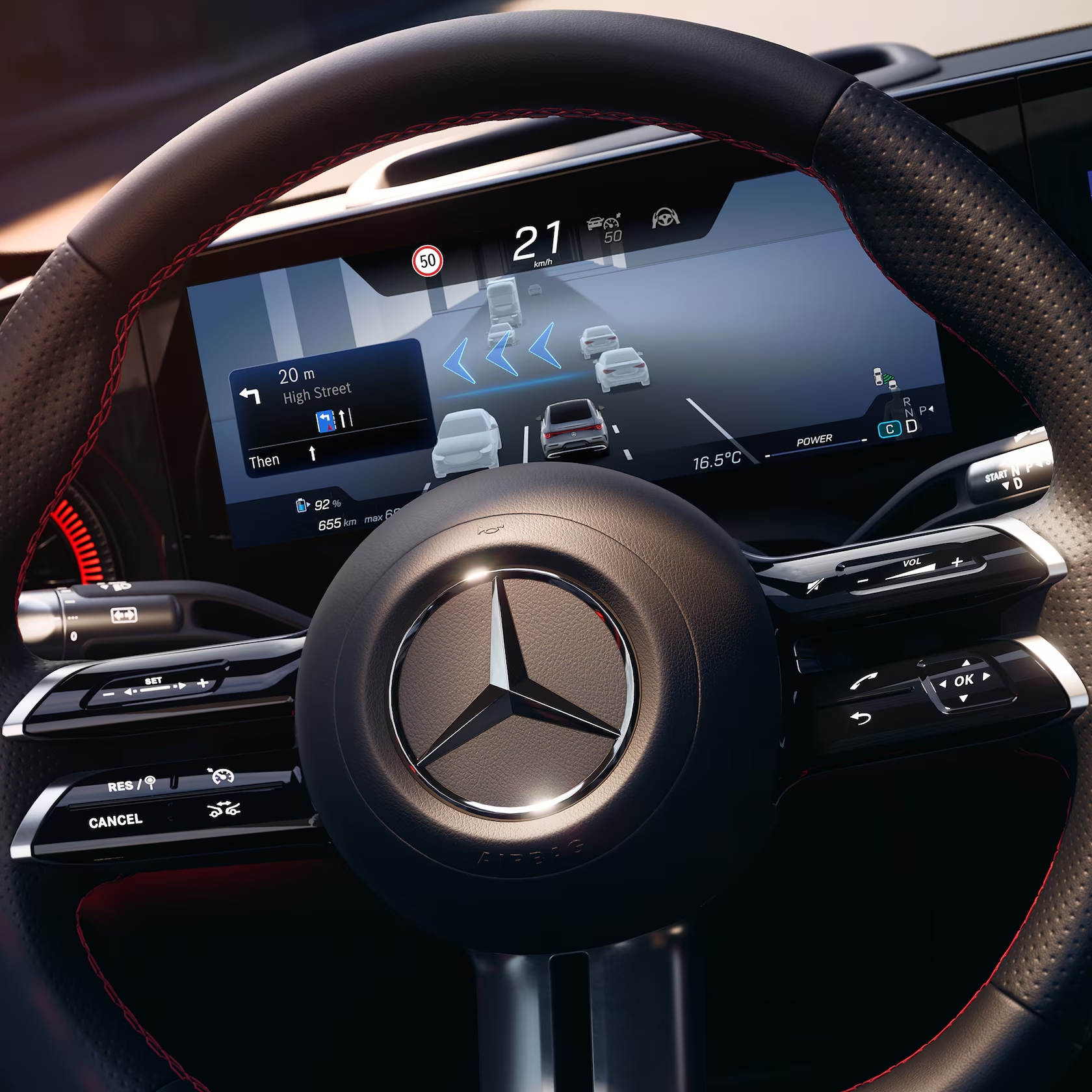 ด้วยระบบปฏิบัติการ Mercedes-Benz ใหม่ล่าสุด MB.OS ทำให้รถยนต์ CLA รุ่นใหม่ก้าวไปอีกขั้นในด้านการนำระบบดิจิทัลมาใช้ในรถยนต์ ด้วยสถาปัตยกรรมแบบ Chip-to-Cloud ใหม่รถยนต์ CLA จึงเชื่อมต่อระบบส่งกำลัง ระบบความบันเทิง และระบบอื่นๆ อีกมากมาย พร้อมทั้งอัปเดตข้อมูลผ่านระบบไร้สายอย่างต่อเนื่อง นอกจากนี้ยังช่วยให้สามารถจองตามความต้องการ เช่น ความบันเทิงหรือฟีเจอร์ช่วยเหลือการขับขี่ และคำสั่งเสียงมากมายที่คุณสามารถใช้ในระบบช่วยเหลือเสมือนจริง MBUX ใหม่ของเรา ด้วยการใช้พลังของ AI ไม่เพียงแต่จะตอบสนองต่อเสียงของคุณอย่างเห็นอกเห็นใจเท่านั้น แต่ยังทำให้การโต้ตอบมีความเป็นธรรมชาติมากกว่าที่เคยใน Mercedes-Benz อีกด้วย